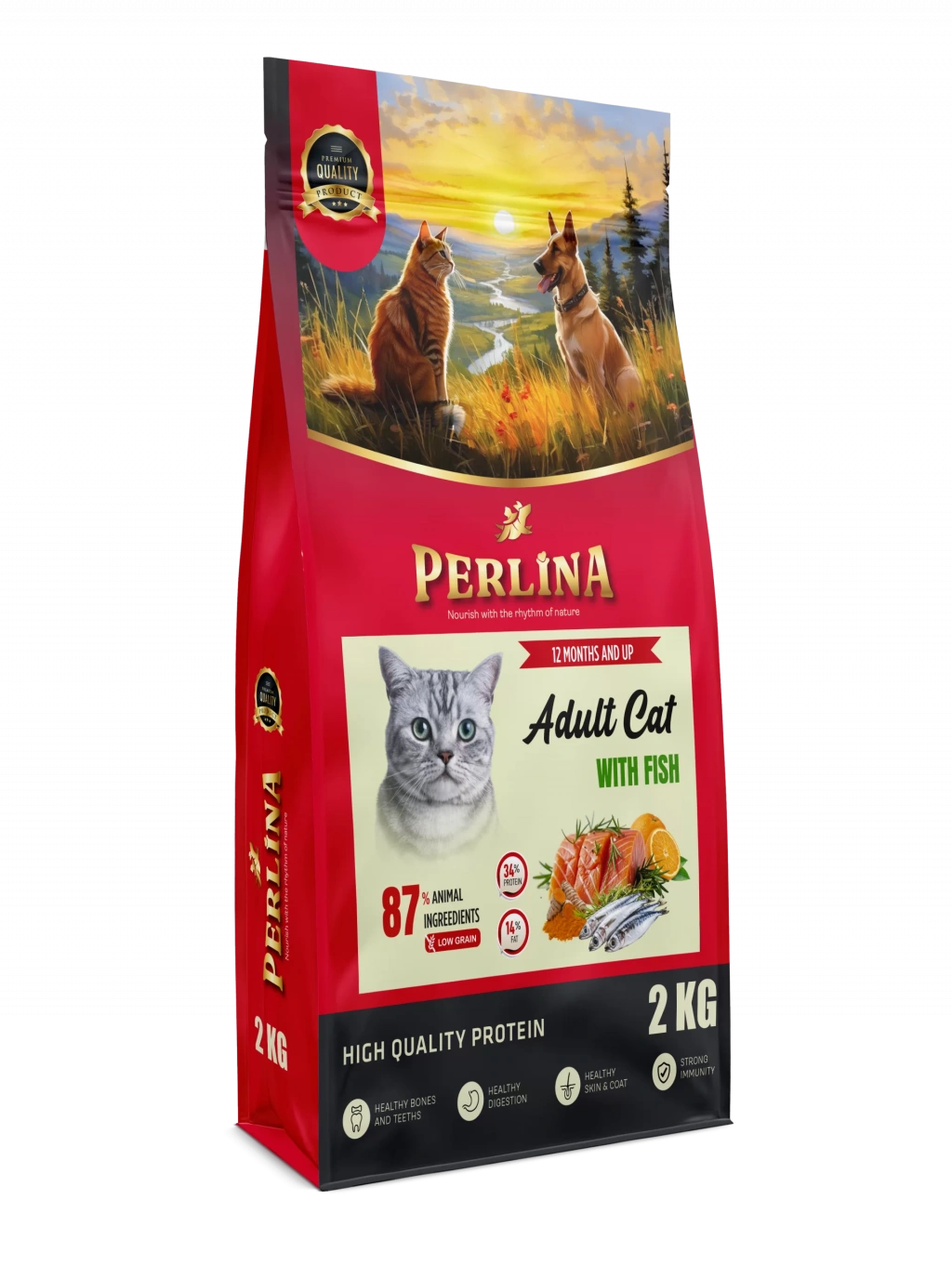 Perlina Yetişkin Kedi Maması, Balıklı, 2 KG, Yüksek Protein İçerikli