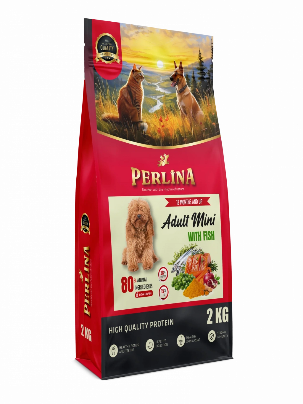 Perlina Yetişkin Küçük Irk Köpek Balıklı 2 KG Köpek Maması, 12 ay ve üzerindeki küçük ırk köpeklerin özel beslenme ihtiyaçlarını karşılamak için özenle hazırlanmıştır. %80 hayvansal içerik, en az %15 tavuk ve %15 balık (somon ve hamsi) ile yüksek kaliteli protein sunar. Havuç, bezelye ve nar gibi doğal bileşenler bağışıklık sistemini güçlendirirken, zerdeçal sindirim sağlığını destekler. Vitamin ve mineraller kas gelişimi, güçlü kemikler ve parlak tüyler için katkı sağlar. Düşük tahıllı formülü sayesinde sindirimi kolay, sağlıklı ve lezzetli bir öğün sunar.
